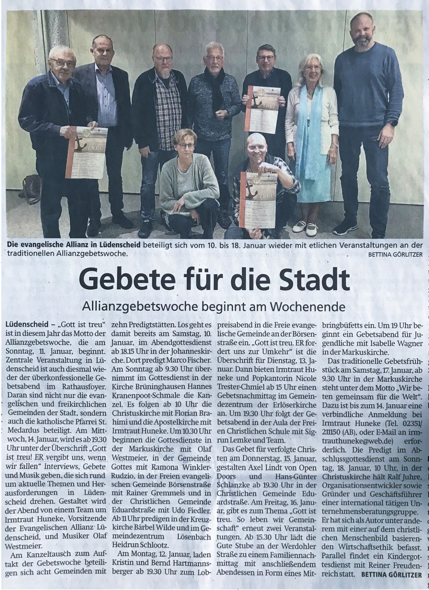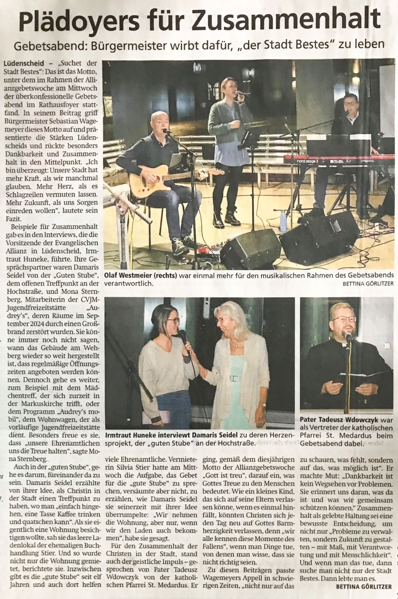 Bei dem seit 2007 überkonfessionellen Gebetsabend im Rathaus Forum, wurde diesmal auch der Bürgermeister, der von Anfang an dabei war, verabschiedet. Das Thema lautete: „Suchet der Stadt Bestes“. Dazu gab es, außer dem Bürgermeister, mehrere Gesprächs- und Gebetspartner und einen sehr großen Zeitungsbericht.